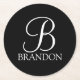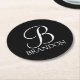 Black Personalised Script Monogram and Name Round Paper Coaster