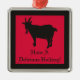 Bring a dark and daring vibe to your holiday décor with this striking square metal ornament. Featuring a bold black goat, inspired by Black Phillip from the folk horror movie The Witch, and the eerie phrase "Have a Delicious Holiday" against a deep crimson red background, this ornament is perfect for horror enthusiasts and movie fans alike. Ideal for adding a unique, spooky touch to your Christmas tree, it also makes a memorable gift for the right person—someone who loves horror, folk horror, and the unsettling beauty of the season.
