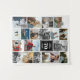 Tapestry for a birthday celebration featuring a photo collage of 19 photos, name, and age. Perfect for big celebrations where you can add lots of photos from the long life of the birthday celebrator. Birthday party decor in the form of a tapestry personalised with photos, name, and age.