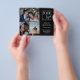 Double sided flyer for a professional photographer, where you can showcase three of your photos along with your logo. Add your name and speciality or title or service on the cover. The back features faux gold spatter, another logo, and your contact information in black.