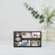 Black business card for a professional photographer, where you can showcase your work in a photo collage with room for six of your photos in three different sizes. Add your name or business name and logo on the cover. This design works best with a light logo, because of the black background. Add your contact information on the back. An elegant, minimalist business card, perfect for a wedding photographer, or even makeup artist, artist, jewellery designer and much more.