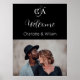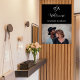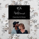 A chic black background. Personalise and add your photo, monogram initials, names. White text.