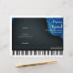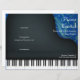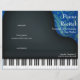 This is an elegant folded recital or concert program template featuring a stylised piano illustration on a background of clefs and music symbols.
