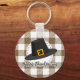 Black Pilgrim Hat on Brown Plaid - Thanksgiving Key Ring