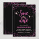 Pink 61st birthday invitations Save the date black Glam chic glitter sparkle
