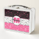 Great personalised gift for the music lover in your life, this design features a colour scheme of black pink and white with contrasting music notes colour on a three bar design. Can be fully personalised with a subtle name and monogram.