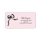 Coquette Black Pink Bow Return Address label with delicate black bow on soft pink background.