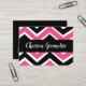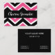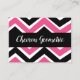Black Pink Chevron Stripe Geometric Pattern Business Card designed by Nisha Prabhu. Fully Customisable. Personalise with your details. This black pink chevron stripe geometric pattern business card is a stylish and modern option for professionals looking to make a memorable impression. The card features a bold and eye-catching design with a black and pink chevron stripe pattern, adding a contemporary and vibrant touch. The geometric pattern adds a sense of sophistication and uniqueness to the card, making it stand out from traditional designs. The combination of black and pink colours creates a striking contrast, adding visual interest. With its attention-grabbing design and professional quality, this black pink chevron stripe geometric pattern business card is a great choice for individuals who want to leave a lasting impression on potential clients or business contacts.