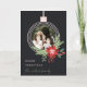 Black Pink Christmas Ornament Photo Poinsettia Holiday Card