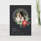Black Pink Circle Christmas Photo Poinsettia Flora Holiday Card