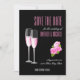 Feminine beautiful design combines elegant black background with amazing modern typography and pink flowers as well as champagne glasses. Save The Date card for your wedding is important and you deserve the best one. This elegant and luxurious design will be perfect.