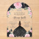 Personalise this modern floral Quinceañera / Sweet 16 birthday acrylic arch invitation easily and quickly. Simply click the Edit Using Design Tools button to further edit the text, change font styles and font colours. Featuring a girl dressed in a glittery black dress, pretty black and pink flowers and a silver princess crown. The butterfly, quince girl and crown are moveable, resizable, multipliable and removable. Customise it to suit your occasion. Matching items available in store. (c) Somerset Fine Paperie by The Happy Cat Studio.