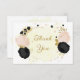 Romantic black & pink flowers with gold leaves botanical wedding thank you card.