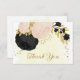 black & pink flowers gold botanical wedding thank you card