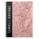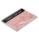 This bold notebook features a pink foil texture with a solid black strip up the inner edges. Add your name in a white, modern typeface up the side. Suitable for school or business. Could also be used as a party planner.