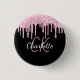 A black background decorated with pink faux glitter drips, paint dripping look. Personalise and add a name, your monogram initials. The name is written with a hand lettered style script. Perfect as party favours or name tags for birthday parties, bridal showers and bachelorette parties.