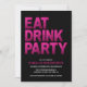 Black Pink Glitter Eat Drink Party 50th Birthday Invitation