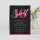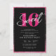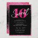 Black Pink Glitter Glam Sweet Sixteen Birthday Invitation