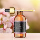 This waterproof dropper bottle product label features a black background and a faux pink glitter border. This label measures 2.6 inches by 1.5 inches (66 mm by 38 mm) and is a great choice when you are looking to package essential oils, fragrance oils, face serums, hair serums, and products requiring a durable label.