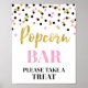 Popcorn bar sign for baby shower, bridal shower, birthday party or wedding in a black, pink and gold confetti pattern.