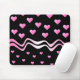 Mousepad with cute, trendy, original and stylish hearts and ribbons design in pink, black and white.