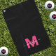Create Your Own Personalised Custom Black Modern Script Name Monogram Golf Towel. This chic, feminine golf towel features a stylish monogram design with a flat magenta or hot pink initial on a sleek black background and a classic black script name for a personalised touch. Printed on one side, this towel adds a unique and elegant flair to any golf bag. It makes a fun and sophisticated gift, perfect for birthdays, holidays, Mother’s Day, or any special occasion when you want to celebrate someone—or treat yourself! Ideal for the golf lover who enjoys a blend of style and personalisation while staying practical on the course.