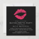 Invite your best girls to party it up with the bride-to-be with these chic bachelorette party invitations! Rounded square cards feature a black background with a pink lipstick kiss print and modern, minimalist white text. Reverse side shows "XOXO" in faux gold brushstroke typography.