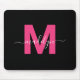 Personalised Girly Modern Black and Pink Script Initial Monogram Mouse Pad. Add a touch of feminine charm and sophistication to your workspace with this chic mouse pad. It features a bold magenta hot pink initial centred on a sleek black background, creating a stylish and girly design. Perfect for students, professionals, or anyone who loves personalised accessories, this mouse pad makes a thoughtful gift for friends, moms, sorority sisters, or anyone special. Ideal for holidays, birthdays, or any occasion, it combines practicality with a fun, polished flair to elevate your everyday workspace essentials.