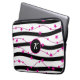 The sleeve is made of nice feeling material and seems very durable. I'm not sure how easy it'll be to clean, but the construction seems sound and the fabric is quick thick. I also like the double zipper. The printing is lovely and appears durable. The white on black contrast is nice, and the design very elegant.
