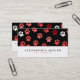 Stylish animal themed business card features a stylish and whimsical puppy dog paw print pattern with blush pink, white and maroon paw prints on a black background. Custom name and title or role presented on a white banner with stylish text. The back of the card is complimentary to the front with contact information presented in coordinating typography.