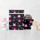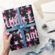 Black Pink Purple Christmas Stars Pattern Add Name Wrapping Paper