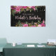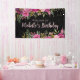 Black Pink Purple Floral Gold Glitter Birthday Banner