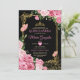 Black Pink Quinceañera Gold Crown Mexican Butterfly Invitation