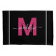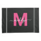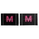 Girly Black Magenta Hot Pink Elegant Script Name Monogram Pillowcases. Create your own personalised girly monogram pillowcases, perfect for adding a fun and feminine touch to any bedroom, college dorm, or sorority house room. This chic set features a bold black background, a striking hot pink magenta initial, and an elegant white script name for a playful yet sophisticated design. Sleek double white lines on each side of the monogram add a polished and modern finish.