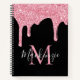 Black Pink Sparkle Glitter Drips Monogram Notebook