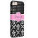 Elegant black pink and white ornate retro floral damasks design and polkadot pattern combination. Custom and optional monogram. Design is available on other products.