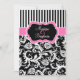 This modern black and white stripes with floral damask wedding invitation has accents of pink on it. The text and type of paper is customisable. ****PLEASE make sure that all text is centred and sized exactly where you want it, as it will print out exactly the way you see it on your monitor. I will not see it, and Zazzle will not edit anything, so if you need help, please email me BEFORE you place your order. If you require any matching items, please email your request to niteowlstudio@gmail.com.