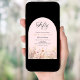 An elegant wildflower invitation. A black background and a pink coloured arch. Decorated with watercolored wildflowers in beige, pink.