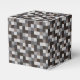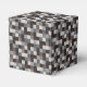 This party favour box features a pixelated pattern of squares in shades of black and grey designed with geeks and gamers in mind. The pattern resembles 16 bit images used in many popular video and computer games.