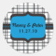 Black Plaid and Blue Wedding Monogram Classic Round Sticker