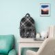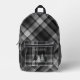 Black plaid backpack for adults or kids. All over plaid with name template on the front zipper pocket. Pine tree images, in shades of black and grey, make a little forest beneath the name. Use the name template, or don't.