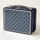 Black polka crosses on blue-gray metal lunch box