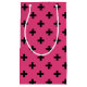 Black polka crosses on fuchsia small gift bag