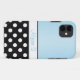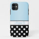 Custom iPhone 5 case personalised with your name, and designed with white polka dots over black, and a gradient baby blue.