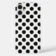 Black polka dots on a white background. But, they aren't just black and white polka dots. The black polka dots have a transparent aspect to the design so that you can change the white background to your favourite coordinating colour. Add a personalised text message.
