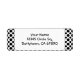 A custom return address label with round letters reading new address and room for your custom address with simple black polka-dots big and small on a fun retro background pattern. Customise It to change fonts, add custom text, change background colours and more.
