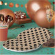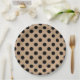Black polka dots on beige paper plate