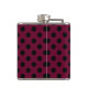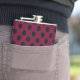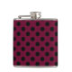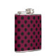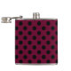 Black polka dots on burgundy hip flask