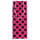 Black polka dots on fuchsia wine gift bag
