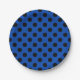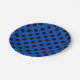 Black polka dots on royal blue paper plate
